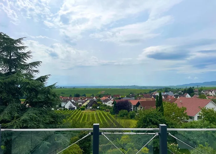 Hotellet Huus Bellevue har utsikt över trädgården och ligger inom 3 km från Weingut Johanneshof im Sonnenschein i Gleisweiler. Det finns också en parkering.